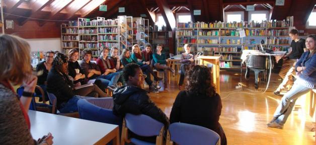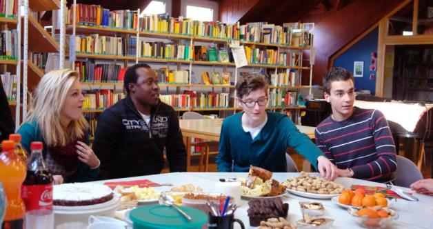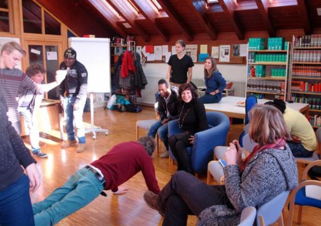 Dem Dialog mit den drei jungen Afrikanern Evangelist und Osazee aus Nigeria sowie mit Abdul Aziz aus Guinea ging eine kurze Einführung in die Flüchtlingsproblematik voraus. Nach einem kurzen Eisbrecherspiel namens „Uga Uga“, aus dem ersichtlich wurde, wie schwer Kommunikation ohne gemeinsame Sprache ist, konnten wir mit den jungen Männern über ihre persönliche Situation sprechen. In Kleingruppen berichteten sie uns auf Englisch oder Französisch über ihr Leben in Afrika, ihre Flucht aus Libyen, über ihre dramatische Überfahrt über das Mittelmeer als auch über ihre Erfahrungen und Eindrücke hier im völlig anderen Südtirol. Zunächst waren einige Ängste auf beiden Seiten bemerkbar, jedoch lösten sich diese schnell auf und es wurden interessante Gespräche geführt.