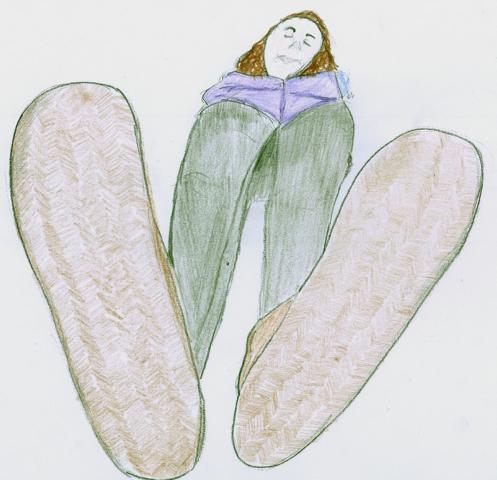 Durch Peilen lassen sich manche Studierende davon überzeugen, dass die hochgestellten Fußsohlen bereits 2/3 des Maßes von der Verse bis zur Nasenspitze ausmachen.
