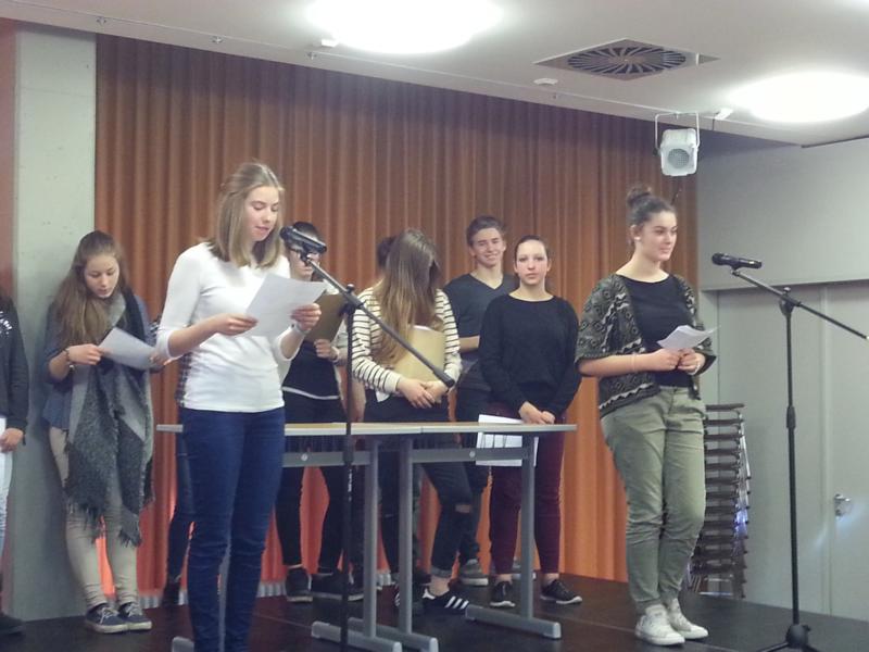 Con la nostra professoressa di italiano, Gabriella De Scisciolo e con Anika Schluderbacher, un’attrice professionista di Bolzano, abbiamo recitato i racconti di Stefano Benni letti in classe.