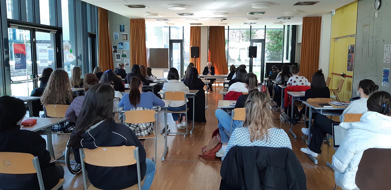 Davanti ad un nutrito gruppo di studenti del quinto anno del Liceo Linguistico Beda Weber/Gymme il dottor Steinhaus ha esordito rivolgendo un pensiero accorato nei confronti del popolo ucraino coraggioso e desideroso di pace. Ha quindi ricordato come dalla terra ucraina provenissero importanti personaggi dell'ebraismo europeo molti dei quali intellettuali determinanti per la cultura occidentale: da Odessa provenivano Isaac Babel, Leone Ginzburg, Vladimir Jabotinskij, Lev Pinsker; da Czernowitz -oggi Cernivci- Paul Celan e Aharon Appelfeld; da Kiev Golda Meir e Vladimir Horowitz e l´elenco potrebbe continuare. Attraverso un dialogo continuo con gli studenti che ponevano domande, Il dottor Steinhaus ha affrontato tematiche scottanti fra Shoah e antisemitismo passato e contemporaneo, presentando anche il suo ultimo libro “Una giornata della memoria 364 giornate dell’indifferenza” edito da Raetia. Qui Steinhaus ripercorre le fasi dell'antisemitismo partendo dalle sue radici storiche per concentrarsi poi sulle sue manifestazioni contemporanee, con particolare attenzione alla realtà altoatesina. Atteaverso le domande degli studenti Federico Steinhaus ha sottolineato ad esempio l'unicità della Shoah, ha narrato episodi famigliari, ha poi risposto a domande riguardanti lo stato di Israele e le tappe che condussero alla sua creazione il 15 maggio del 1948. Sempre con lucidità, pacatezza e precisione ha continuato a dar seguito ai quesiti degli studenti spostando a numerosi altri temi la discussione tenendo sempre desta l'attenzione e alta la partecipazione. Sara Klotz, studentessa della 5Asp, nel ringraziare il dottor Steinhaus per l'incontro ha sottolineato il valore di un incontro come questo e l importanza di riflettere su temi tanto delicati e complessi.