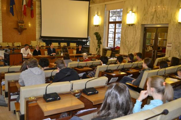 The meeting at the town council of Merano was informative and at the same time emotional. On the one hand, it was informative because of the statistics and interesting facts that the vice-mayor of Merano, Dr Giorgio Balzarini gave us. On the other hand, I found the meeting emotional, too. The head counsellor of the citizens that are not within the European Union, called Diaby Bassamba from Senegal, was full of hope. Actually, he was convinced that a better society will be created, if we collaborate with immigrants but also with our parents. Moreover, he is an exemplary immigrant because he speaks Italian with his children, whereas his wife talks to them in their mother tongue. As a result, his children learn the new culture and simultaneously, they don’t forget their roots. (Fjona - 4B Sprachengymnasium)