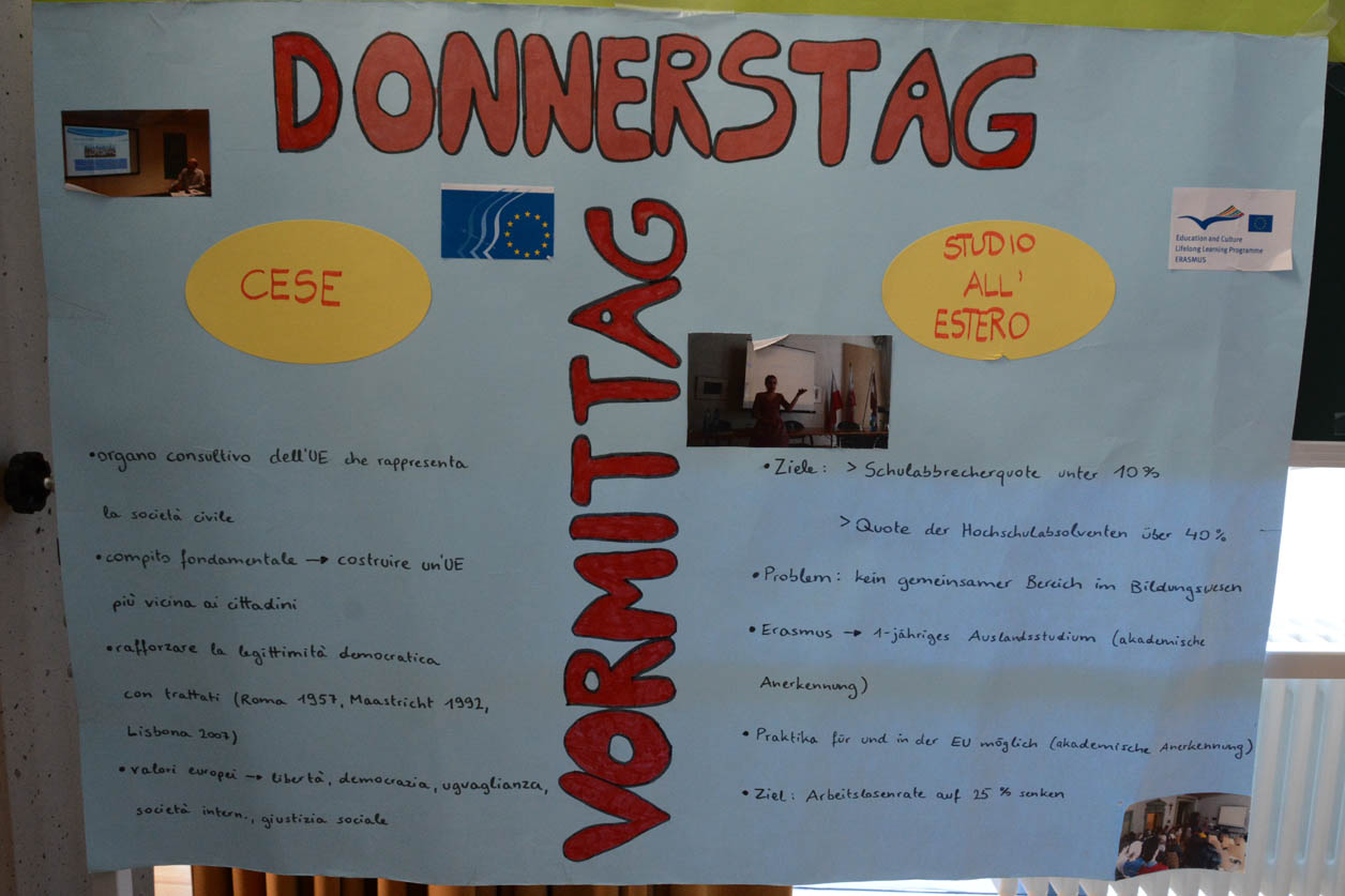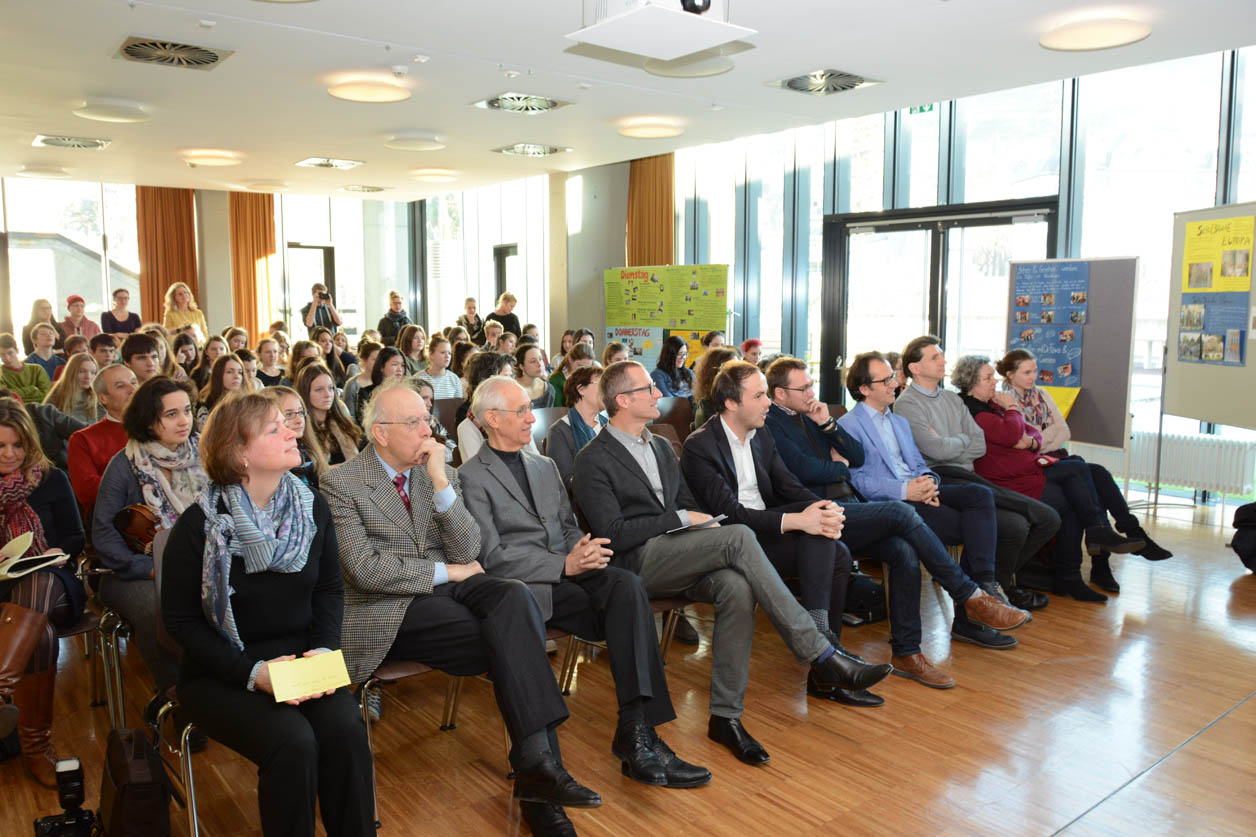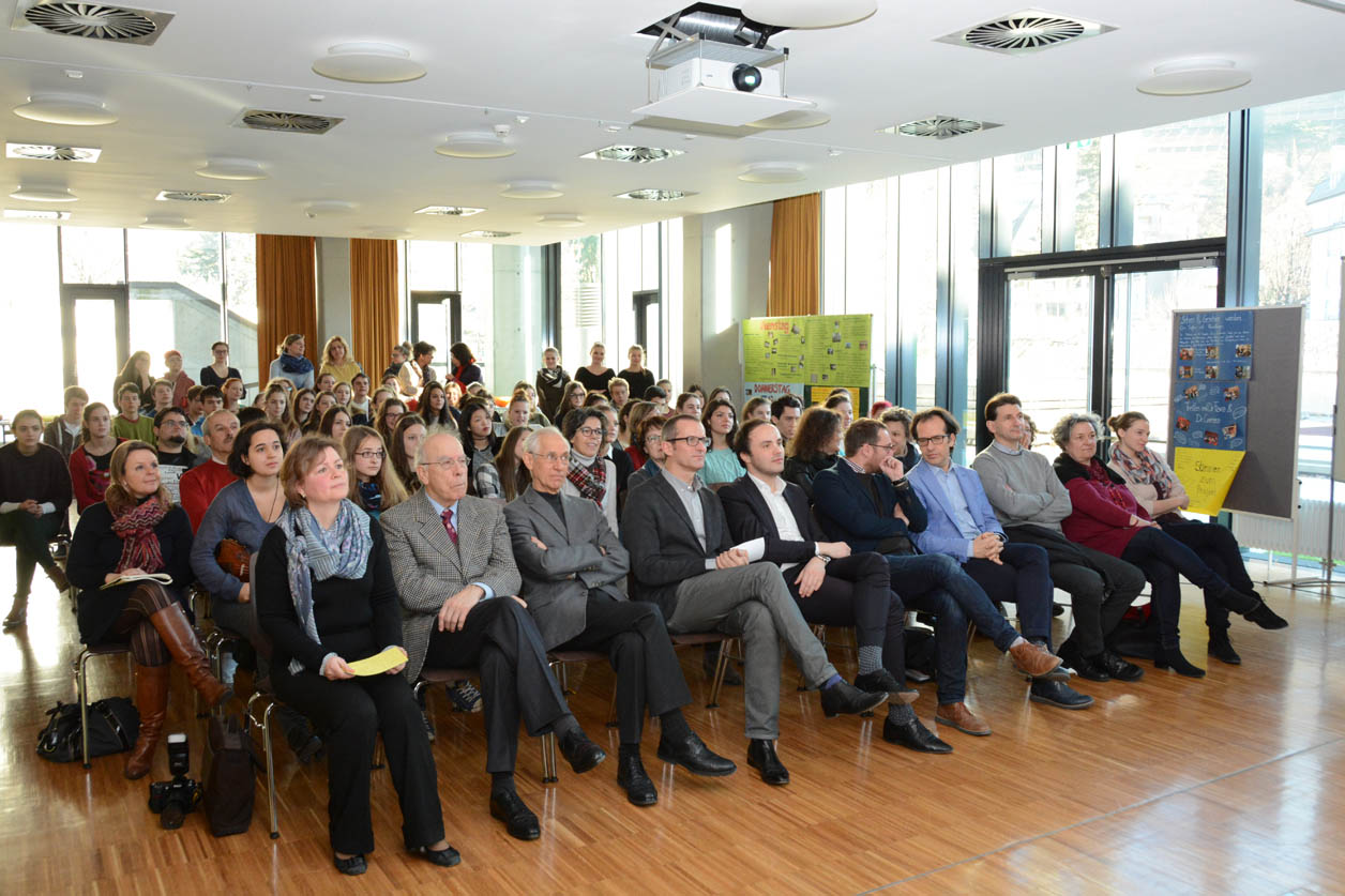 Direktor Dr. Martin Holzner hob in seiner Rede die europäische Ausrichtung der Schule hervor und verwies auf den Europa-Schwerpunkt, der im kommenden Schuljahr am Klassischen Gymnasium gesetzt werden wird. Landesrat Philipp Achammer unterstrich in seiner Rede, dass gerade zurzeit, wo nationalistische Gedanken europaweit wieder Fuß fassen, Projekte des europäischen Austausches von besonderer Bedeutung seien. Er hob die Wichtigkeit der Vermittlung des europäischen Gedankens hervor und sprach der Schule seine Wertschätzung für die Bildungsarbeit in diesem Sinne aus. Thomas von der Gönna erläuterte den Stellenwert der Kooperation und den Beitrag der Südtiroler Beteiligung am Netzwerk und hob den nachhaltigen Charakter des nunmehr 15-jährigen Projekts hervor. „Aus dieser langjährigen Kooperation ist eine Freundschaft geworden.“