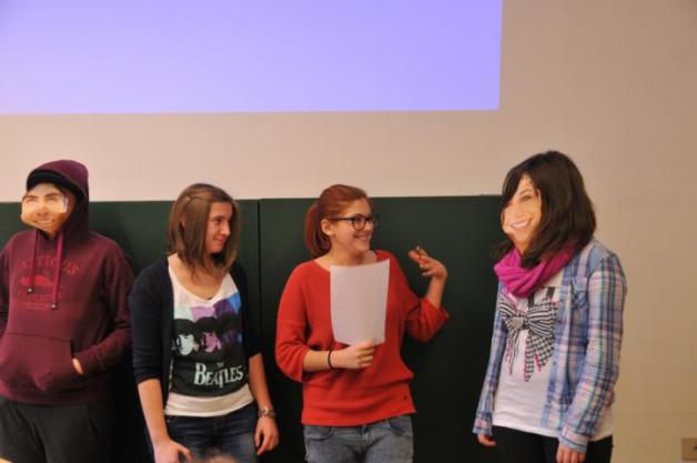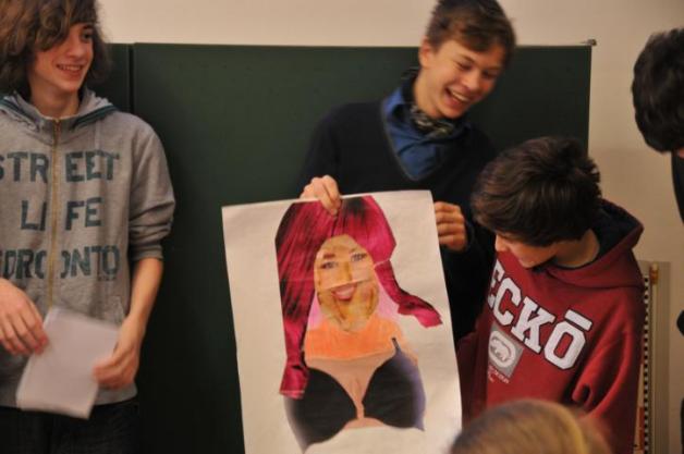 Then, they had to draw caricatures and cartoons and describe their characteristics in English. Indeed, students took the task very seriously: minor flaws like a nose on the bigger side were exaggerated to the extreme, but also freckles and eyes were drawn out of proportion. The outcome was a number of interesting projects and larger than life portraits that were sometimes unflattering and hilarious at the same time