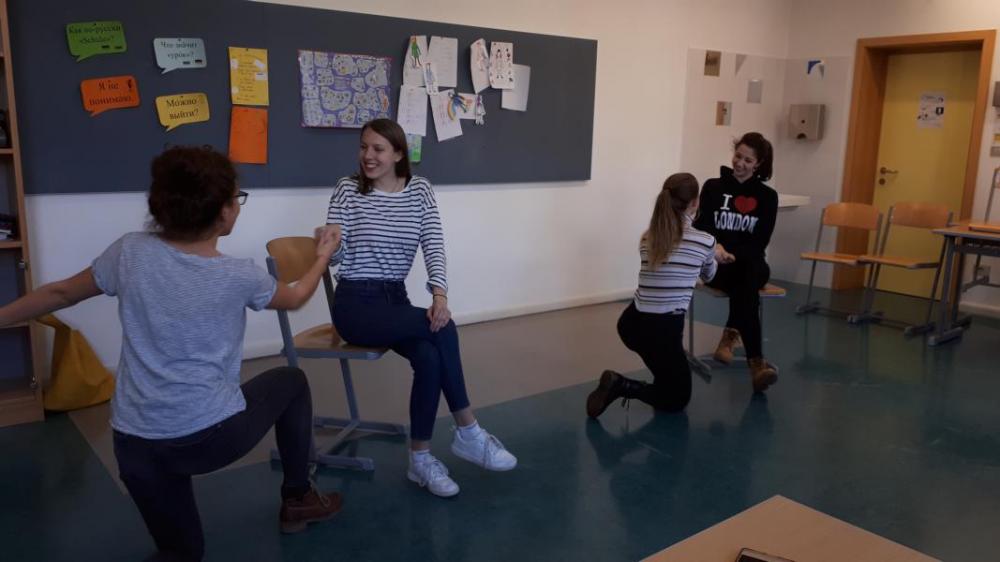 Die SchülerInnen der Russisch-Sprachklassen 3B und 4A haben am 5. Februar 2019 an einem Theaterworkshop in ihrer Fremdsprache teilgenommen. Die Theaterpädagogin und zugleich als Schauspielerin ausgebildete Zhanna Konyaeva hat die SchülerInnen am Sprachengymnasium „Beda Weber“ besucht und mit ihnen, voller Elan und Ausdauer, ihre Liebe zum Theater geteilt. Die SchülerInnen waren mit großer Motivation und viel (Körper-)Einsatz dabei, übten kleinere Theaterszenen ein, lernten neue russische Wörter und erfuhren, wie Mimik, Gestik und Haltung über die Sprache miteinander verbunden sind.