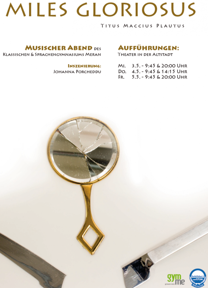 In diesem Jahr kehrt der „Musische Abend“ des Klassischen Gymnasiums und Sprachengymnasiums „Beda Weber“ Meran mit der Komödie „Miles gloriosus“ von Plautus einmal mehr zu seinen Wurzeln zurück und zeigt in der Inszenierung von Johanna Porcheddu eine entstaubte wie vergnügliche Klassik.